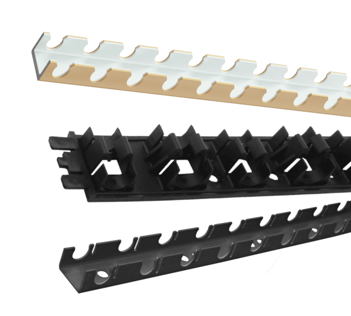 导轨条由塑料制成,有两种结构:槽式和模块式