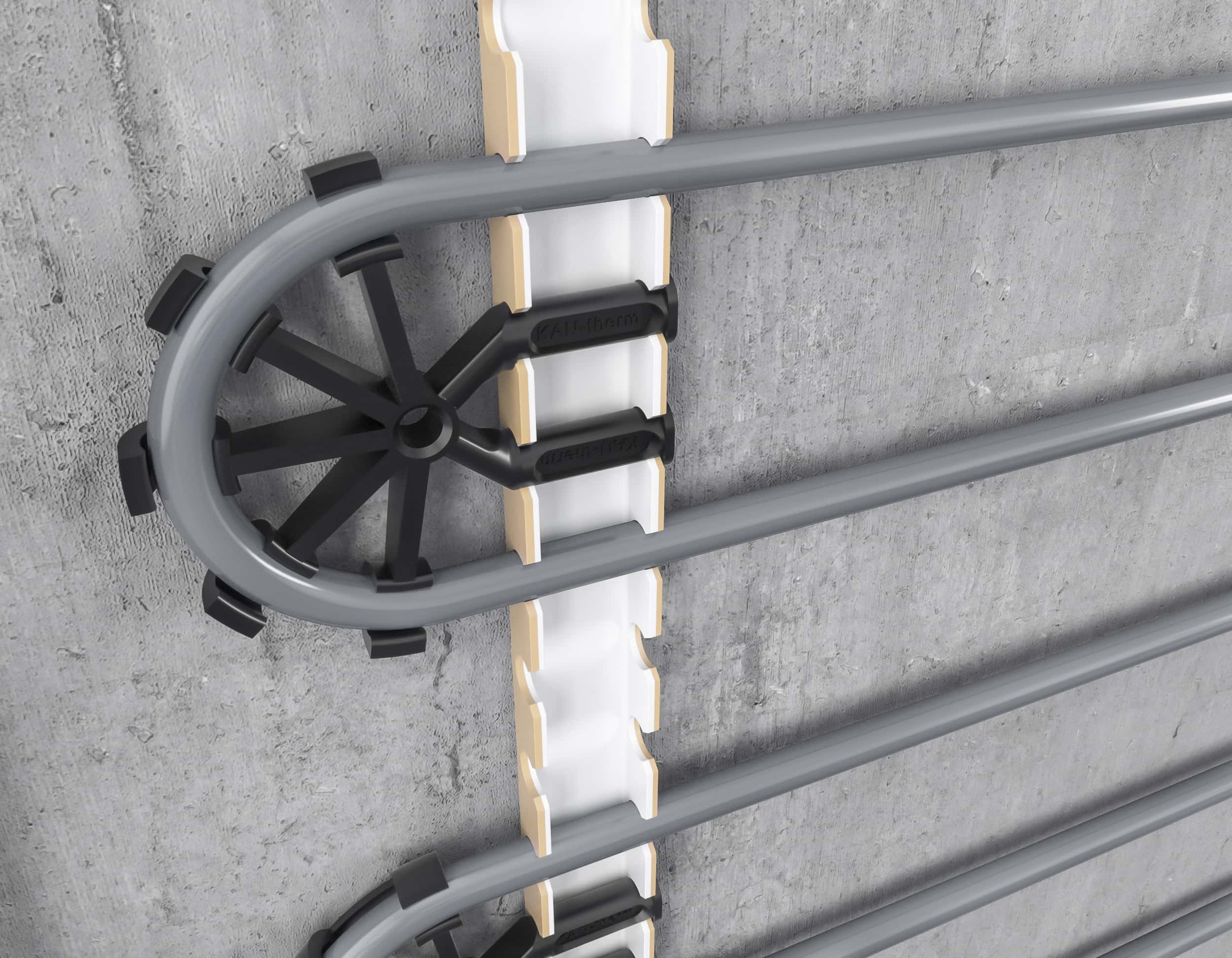 KAN-therm Rail系统基于用于固定供暖管道的特殊塑料条。塑料条可直接安装在建筑物隔墙上,无需任何额外的绝缘材料(地板、墙壁或地面),也可安装在楼宇铺设有绝缘材料的缝隙内,例如KAN-therm Tacker(地板、墙壁)。