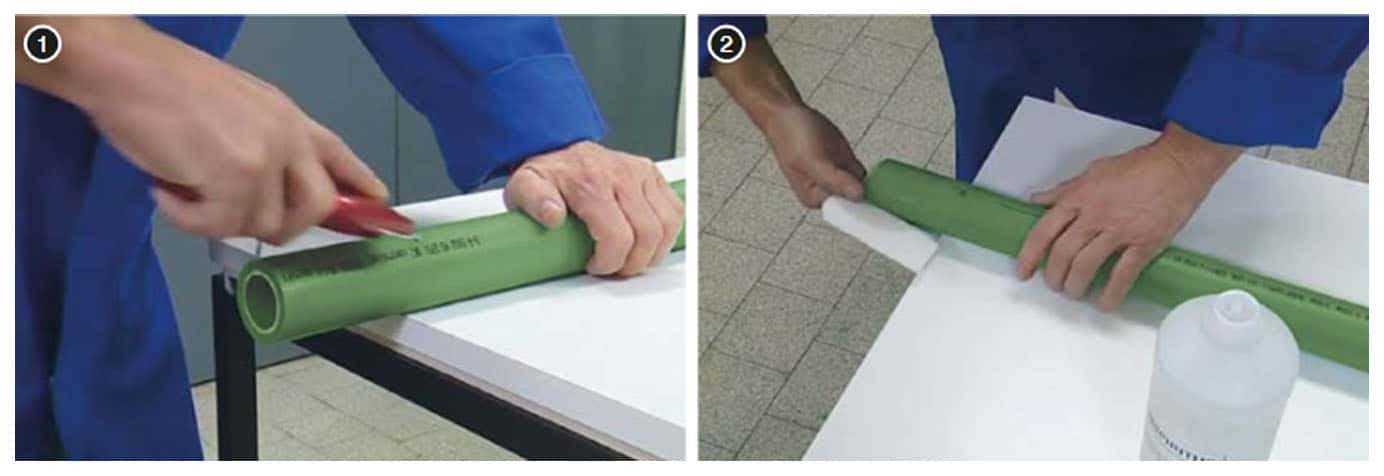 应使用塑料管切割器将所选管道垂直切割至所需长度。不允许使用其他有缺陷(钝或有缺口)的工具或刀具