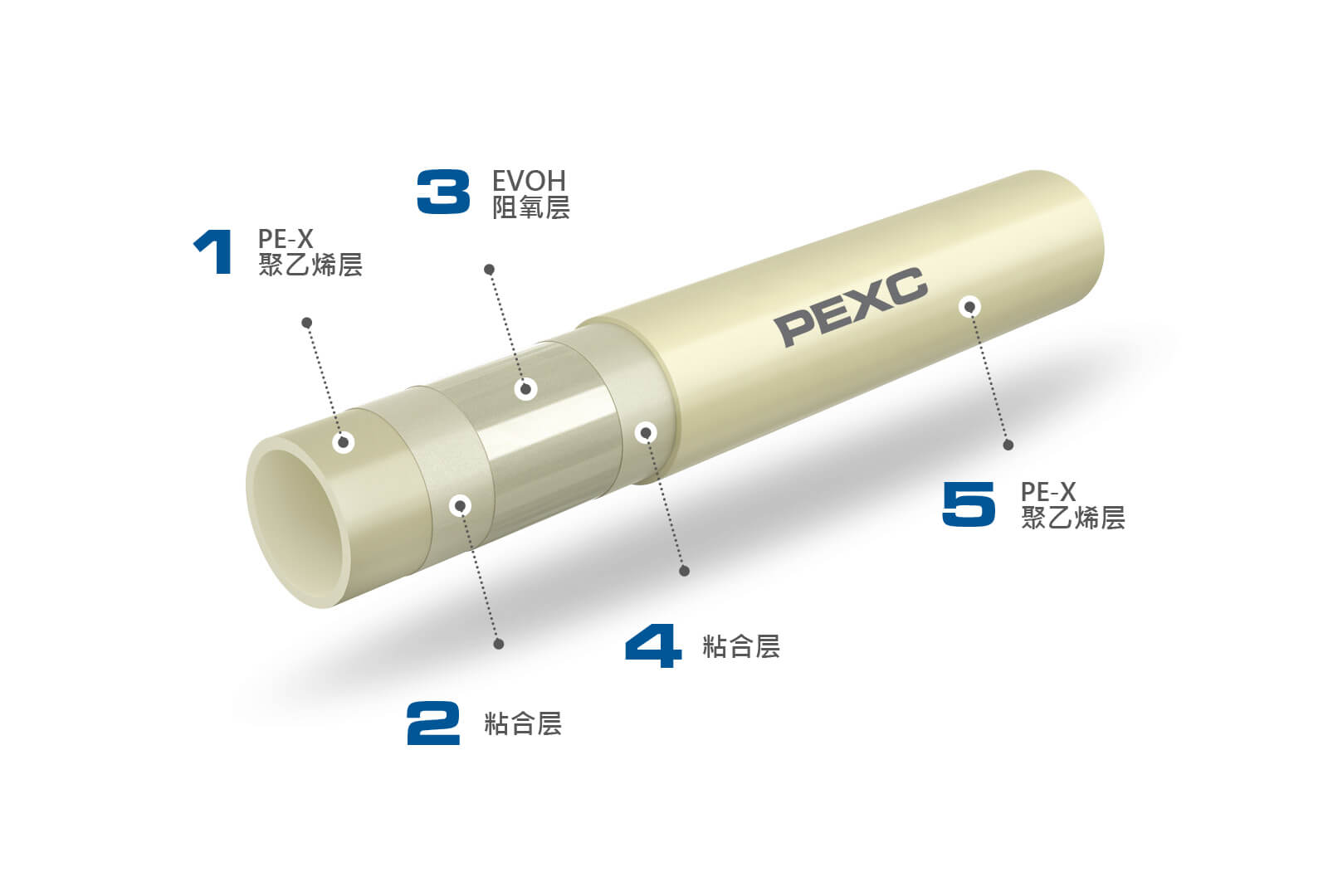 EVOH层的管道有2中不同材料的版本:PE-RT(2型)和PE‑Xc,管径均在16x2和20x2范围。
